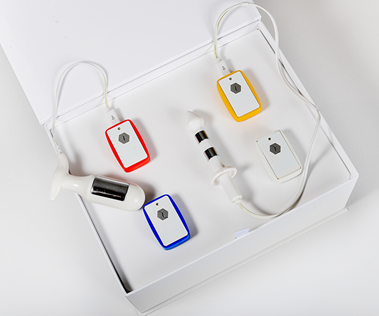 - С помощью специального датчика Callibri, который соединяется с вагинальным электродом кабелем, регистрируется миограмма в процессе сжатия и расслабления «интимных» мышц. Параметры этого сигнала обрабатываются и передаются по Bluetooth на компьютер доктора. Миниатюрные датчики закрепляются на теле пациента и реагируют на сокращение мышц тазового дна, ягодиц, живота, бедер.