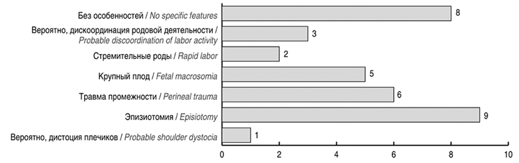 Рис. 1. Особенности родов у женщин, включенных в исследование (количество наблюдений)