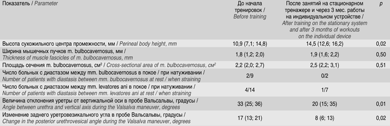 Таблица. Результаты трансперинеальной эхографии до курса тренировок и по его окончании (n = 34)