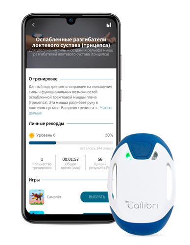 «Callibri Biofeedback Mobile» – домашний тренажер, предназначенный для тренировки ослабленных и расслабления спастичных мышц, пораженных вследствие ДЦП.
